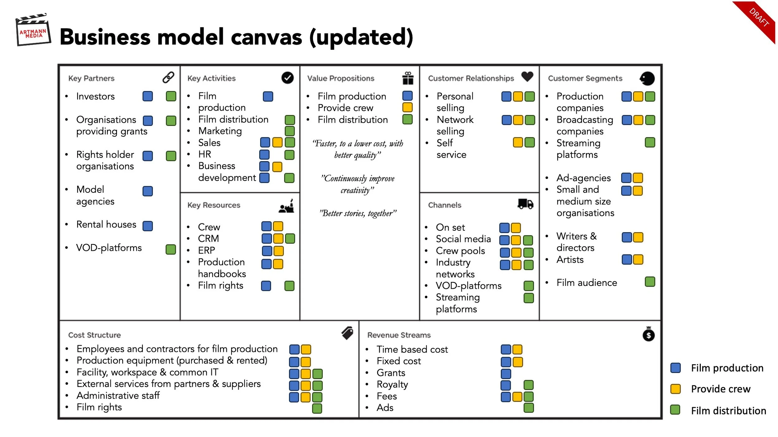 The way we sell productions and provide crew & equipment is streamlined today in our CRM-system and works well, but we don't have a described process for selling movies to B2B or B2C.